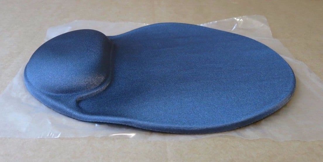 Gel mouse pad features an ergonomically contoured design. Soft gel-filled wrist rest soothingly conforms to wrists and Palms and reduces pressure points for exceptional forearm and wrist comfort. Nonskid base holds mouse pad firmly in place.