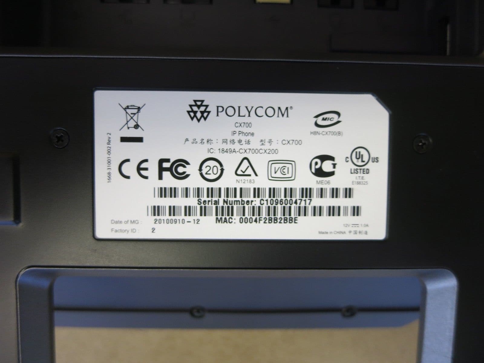 - 1 x Polycom CX700 Desktop IP Phone 2200-31400-012